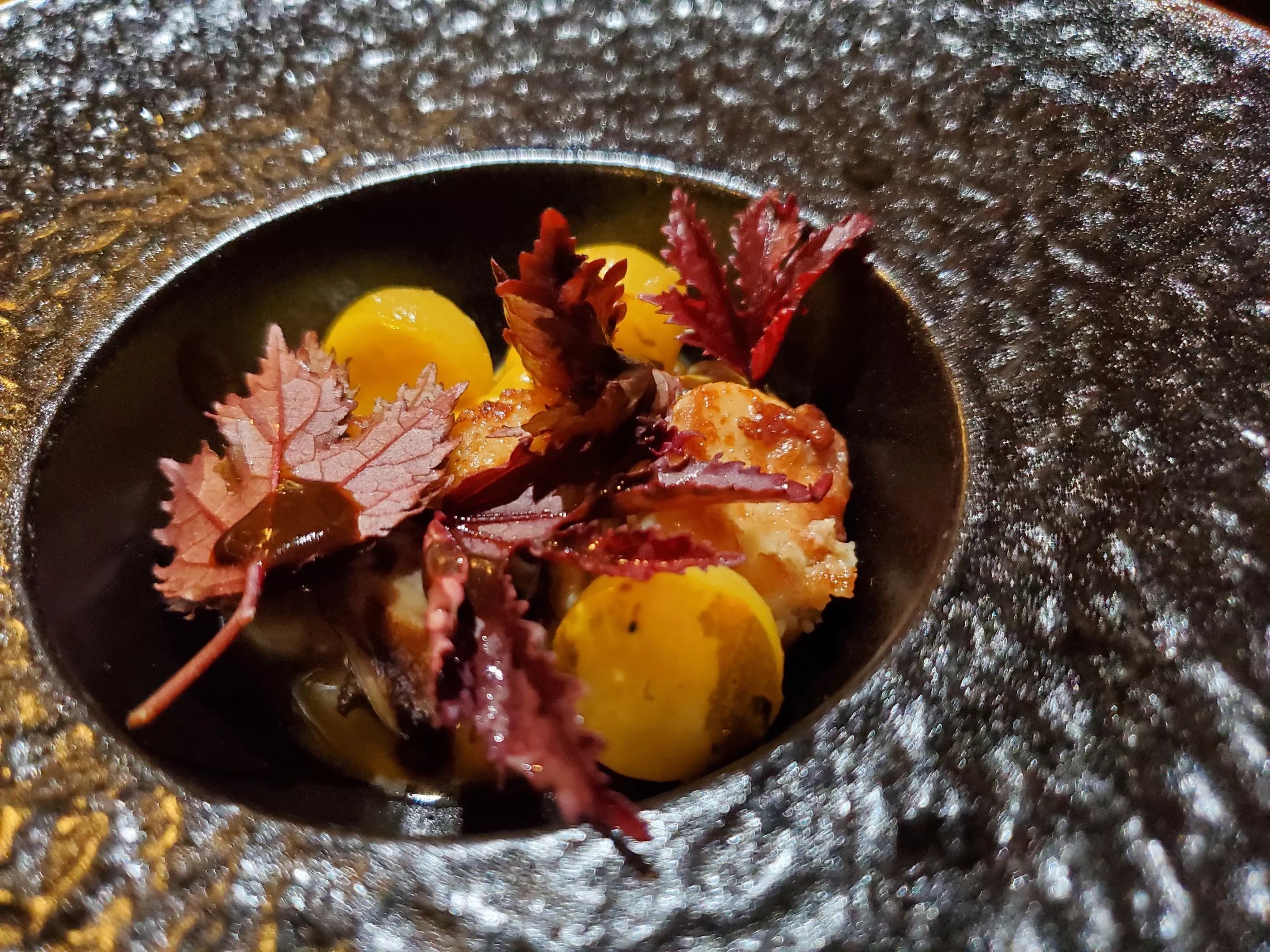 While ten courses sounds like a lot, the dishes are smartly portioned, starting with a trio of snacks that are one bite apiece — beets, duck and oyster, each offering a different texture. Servers explain the dishes as they come to the table in more detail, but part of the fun is not knowing too much before the meal begins.