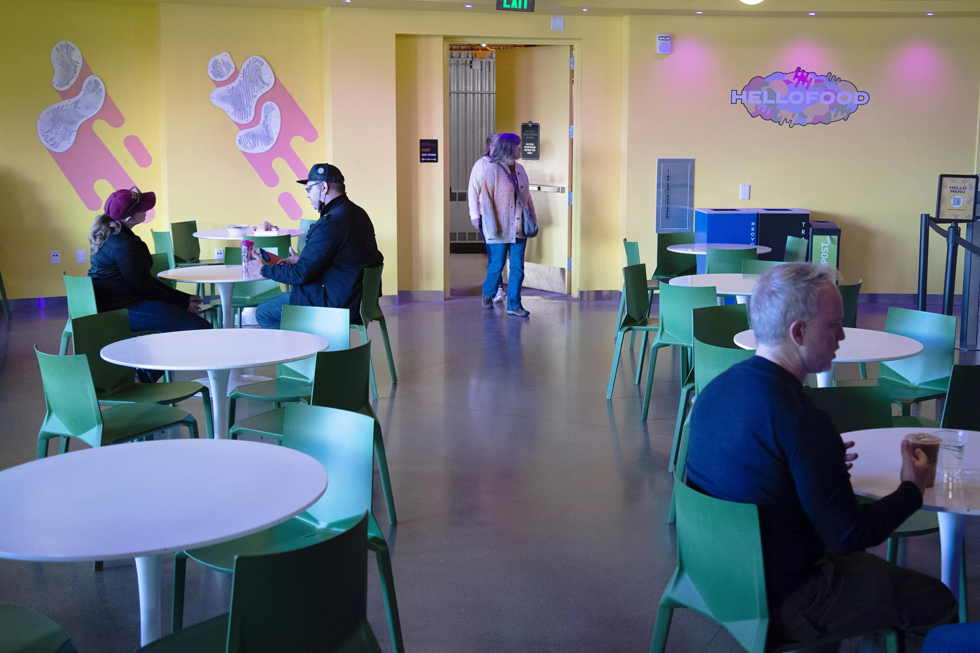 Meow Wolf visitors often pop out from exhibits straight into HELLOFOOD, or stop by for a quick break before exploring further.