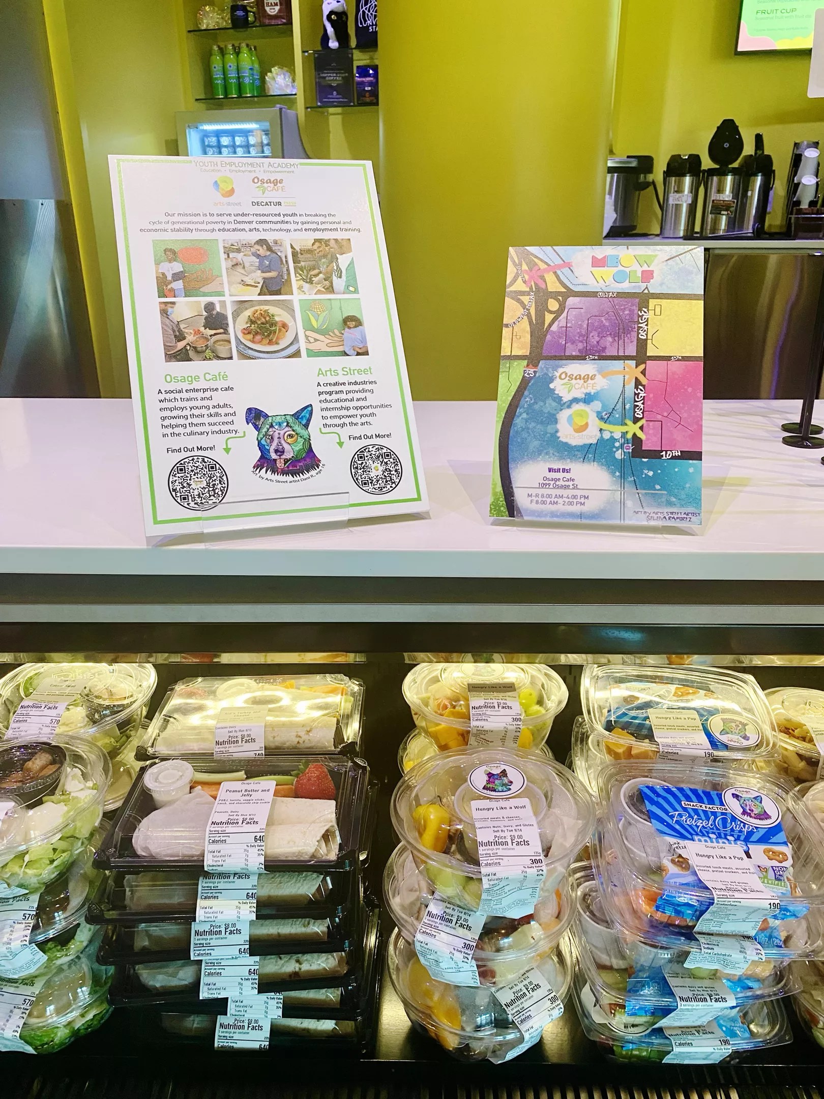 As part of Osage’s training, students make the grab-and-go items sold at HELLOFOOD, prepare items for other vendors, and work in front-of-house or wholesale roles. The team behind Osage also opened Decatur Fresh Market last year, providing affordable and culturally relevant grocery items to the Sun Valley neighborhood that Meow Wolf calls home.
