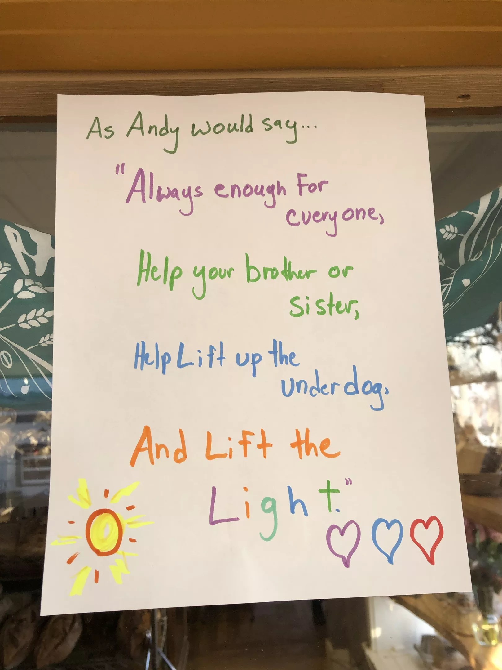 A note left at Moxie in Louisville.