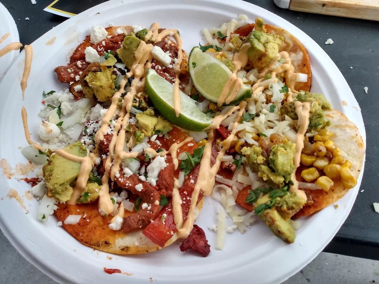 The al pastor is made with marinated pork and topped with cotija cheese, diced onions, chopped cilantro and sliced avocados; the fajitas de res taco has grilled steak and melted pepper Jack cheese, topped with diced onions, chopped cilantro, smashed avocado and sour cream; and a vegetarian elote taco inspired by Mexican street corn comes topped with sriracha aioli, sliced avocado, grilled onions and jalapeños, cotija cheese and cilantro. All of the tacos are served with fresh lime wedges.