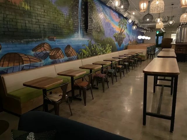 The taproom received a complete makeover, a lot of which happened while Monahan was working at Kodiac during the day and building out Monolith on nights and weekends. He wants to transport patrons away from South Broadway when they walk into the taproom. “It’s a lot of greens and blues,” he says. “It gives the feeling like you’re kind of in nature, the outdoors,” he adds.