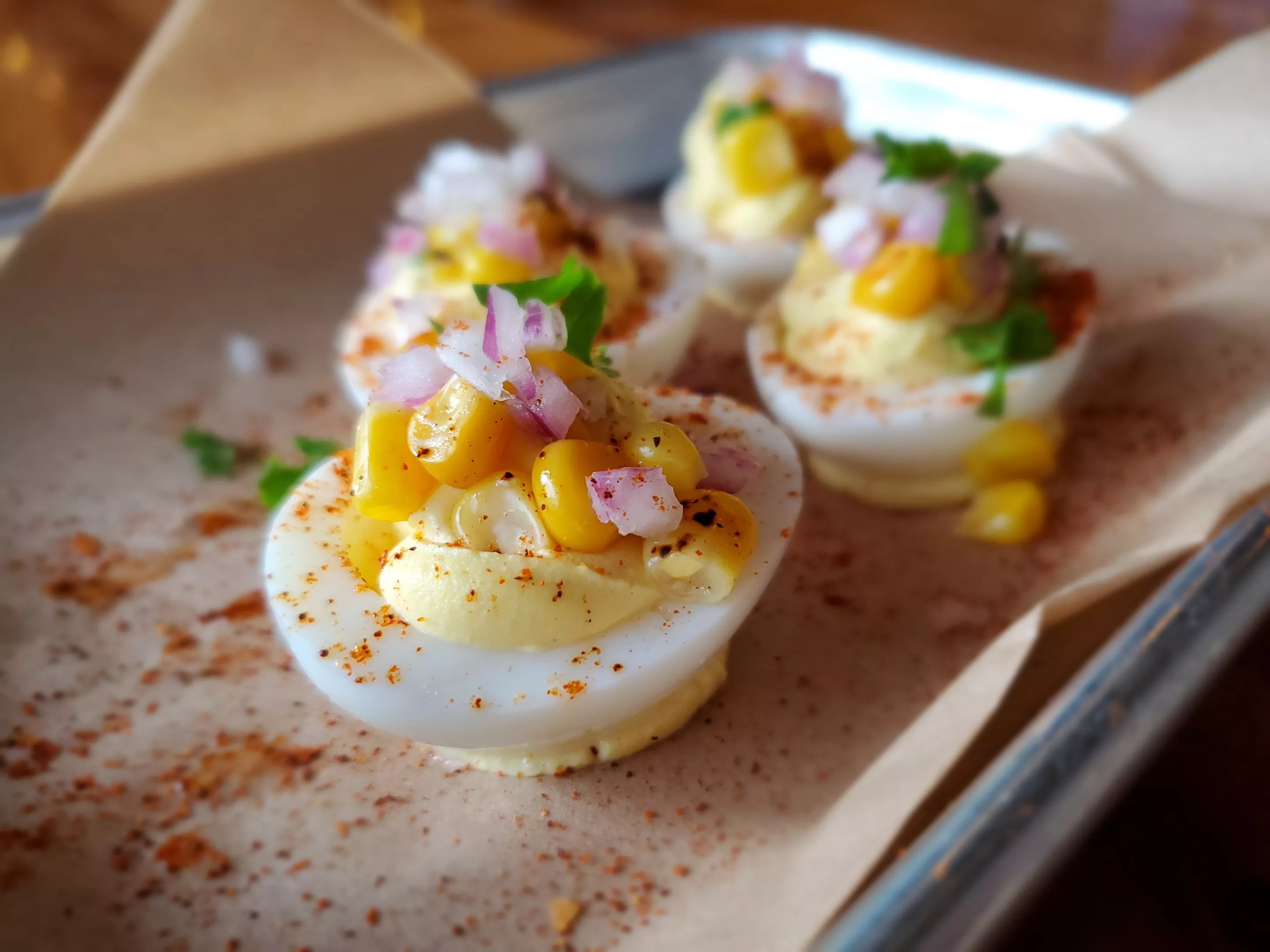 The deviled eggs at Stoney’s Cantina get a street-corn-style treatment.
