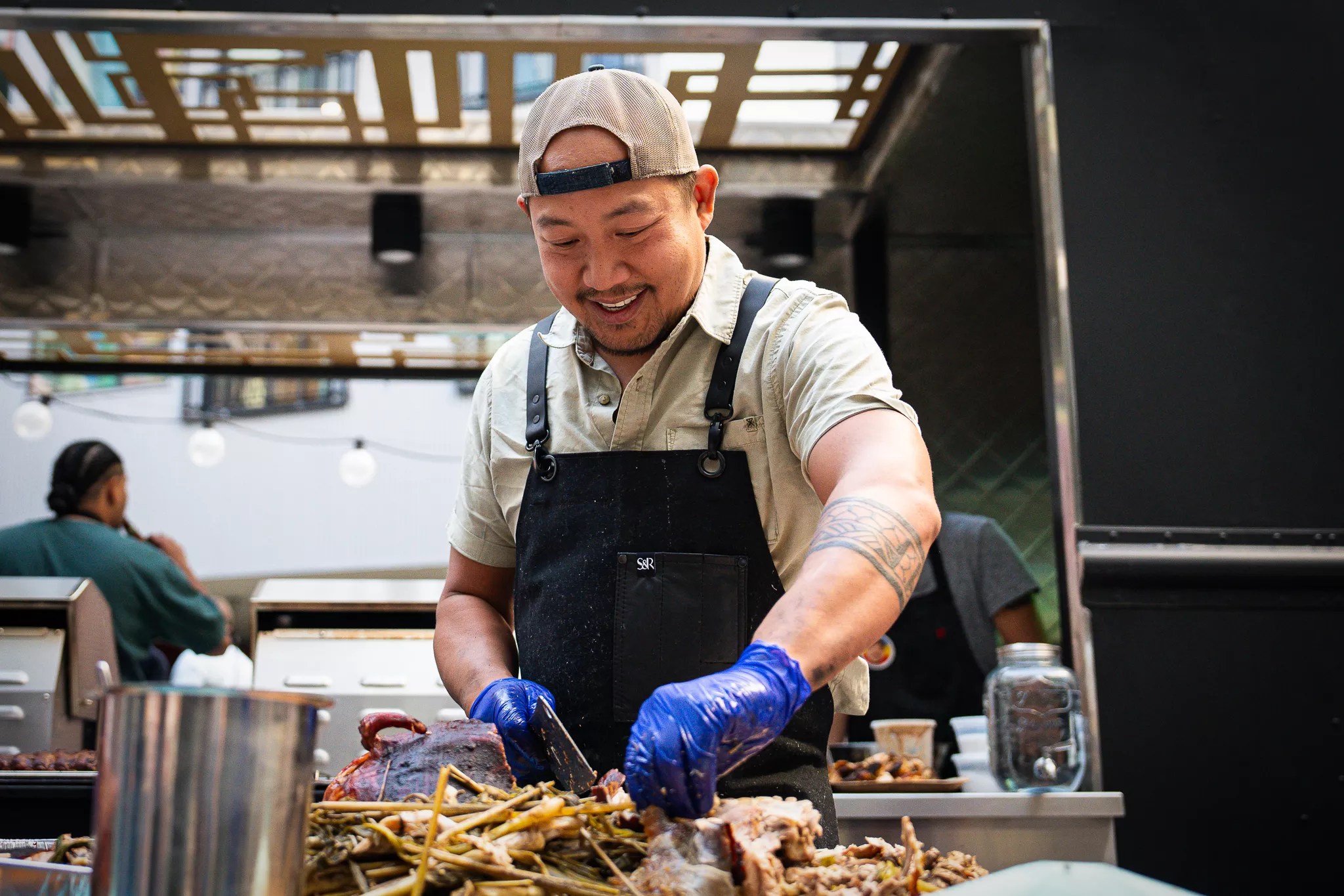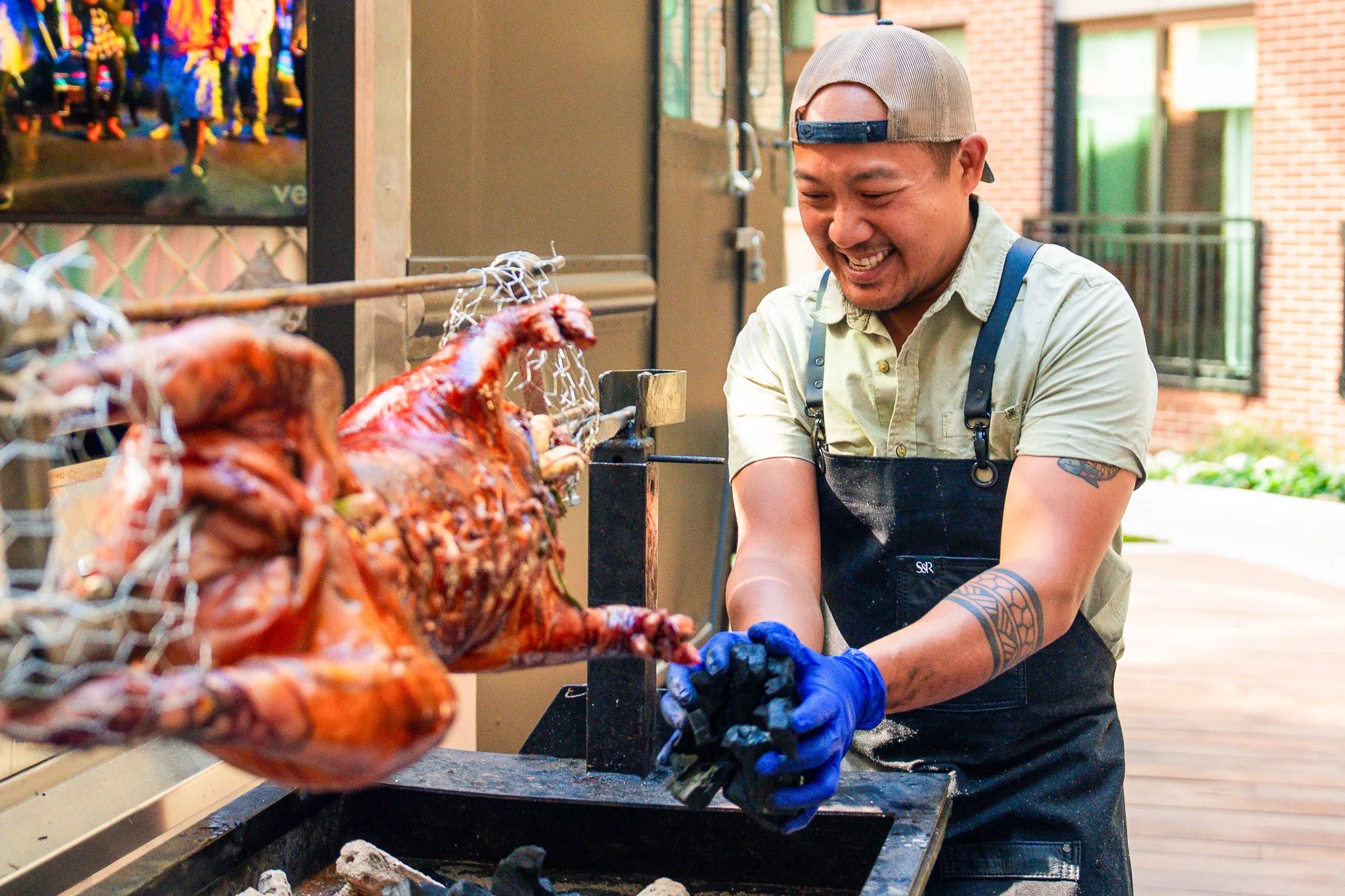 The chef’s creative process begins with his family’s influences. Lamagna was born in the Philippines, spent his early childhood in Detroit, and moved back to the Philippines at age eleven. He recalls watching his uncles butcher goats when he was a kid, getting to kill his first pig for a family gathering at age eleven, and cooking Food Network recipes with his sister at fourteen. Witnessing the process from start to finish, he says, gave him an appreciation for the ingredients, the craft and the function of a well-made meal. “It was knowing that deep down inside, I’ve always had the knowledge of food and where food came from.”