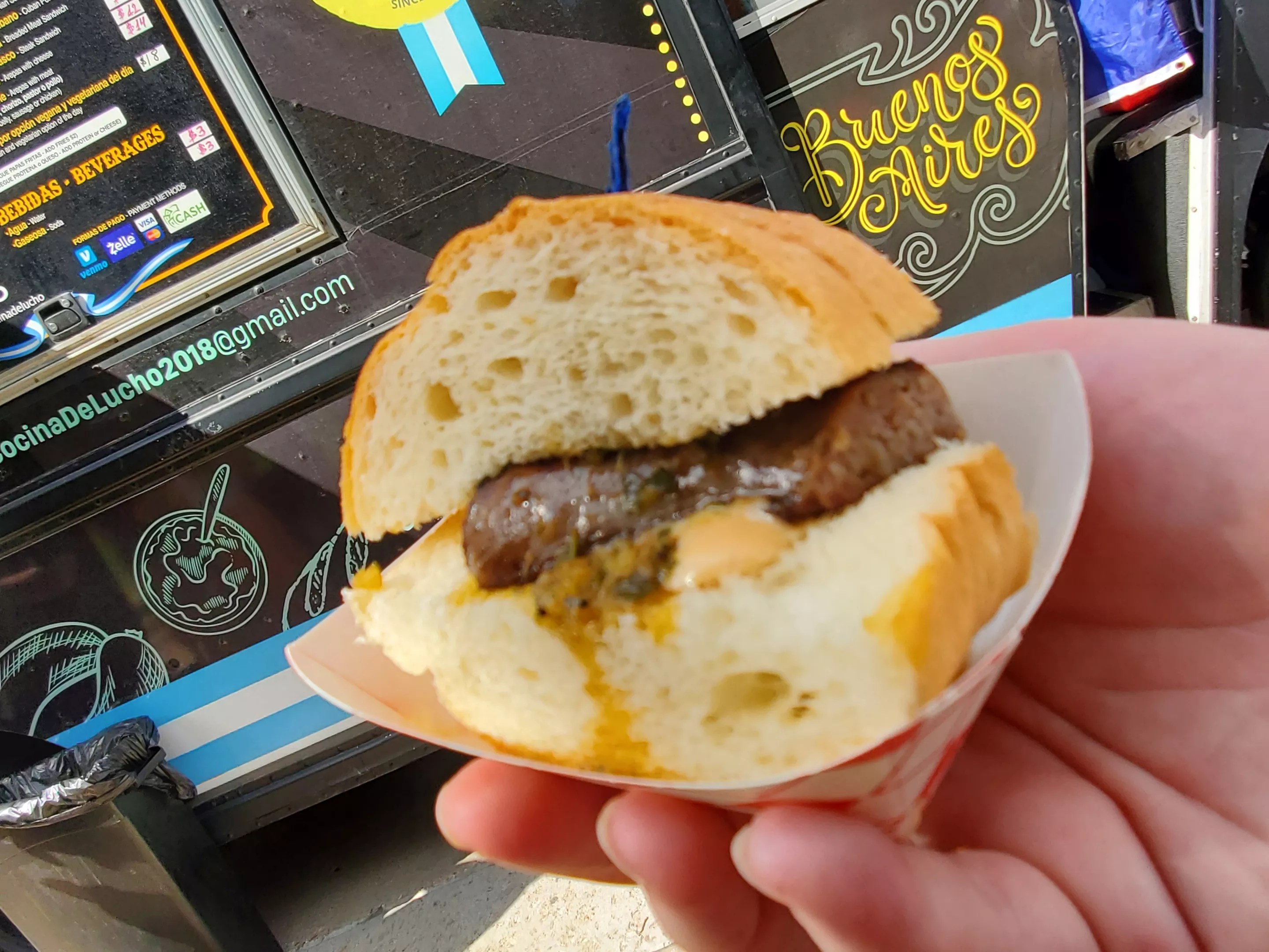 La Cocina de Lucho, which operates both a food truck and a brick-and-mortar on Havana Street in Aurora, serves a menu that also highlights Argentinian fare. Instead of tacos (which are on its regular menu), it handed out bite-sized portions of its choripán sandwich, loaded with flavorful Argentinian pork sausage.