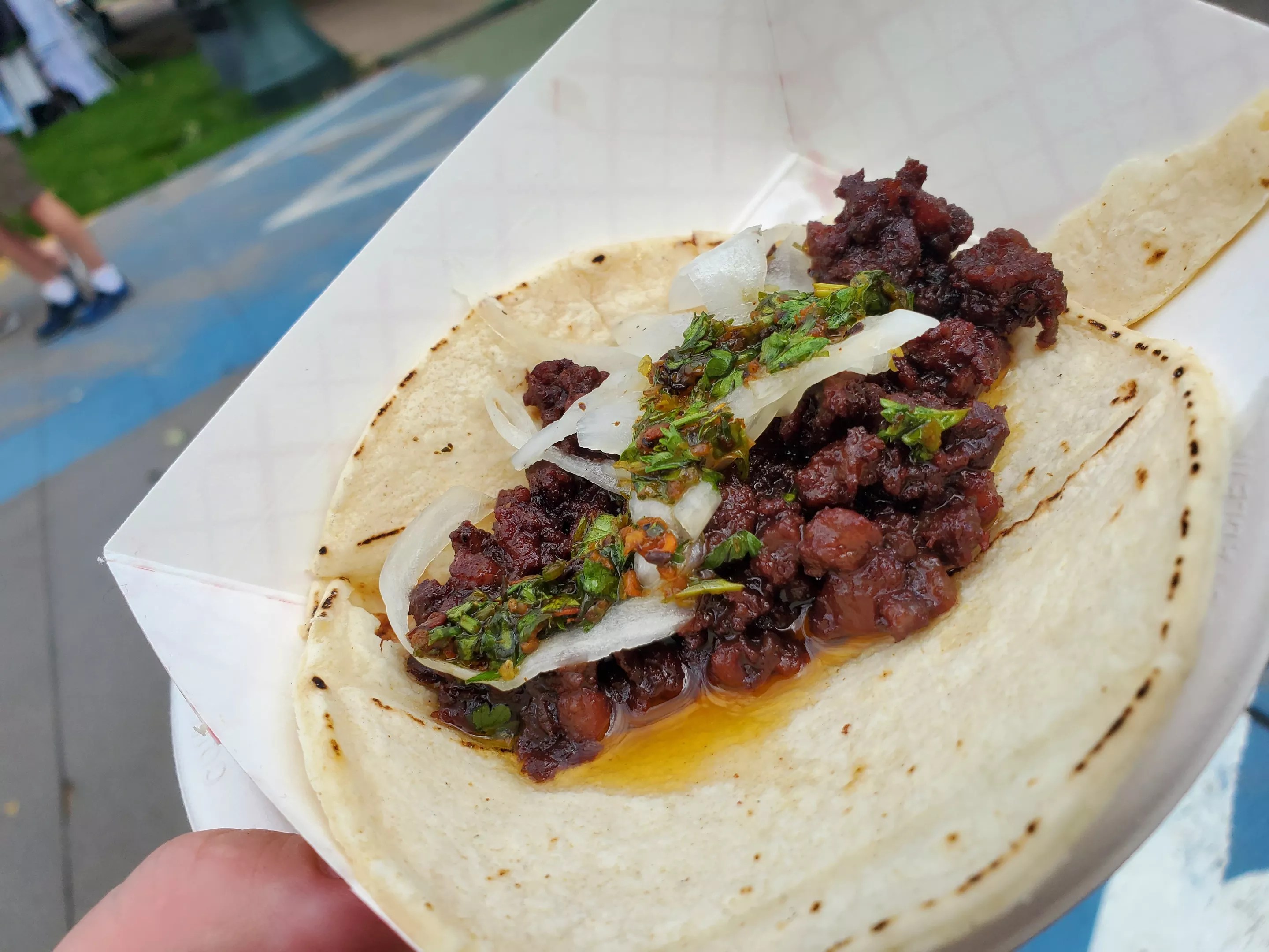 Last year, Chile con Quesadilla had pulled up in its pink truck and was a crowd favorite. Since then, it’s opened a brick- and-mortar location in Brighton at 227 North Main Street. The team was back at Tacolandia with a pink tent for 2023 and was once again a standout, serving up some seriously impressive brisket tacos loaded with creamy mac and cheese.