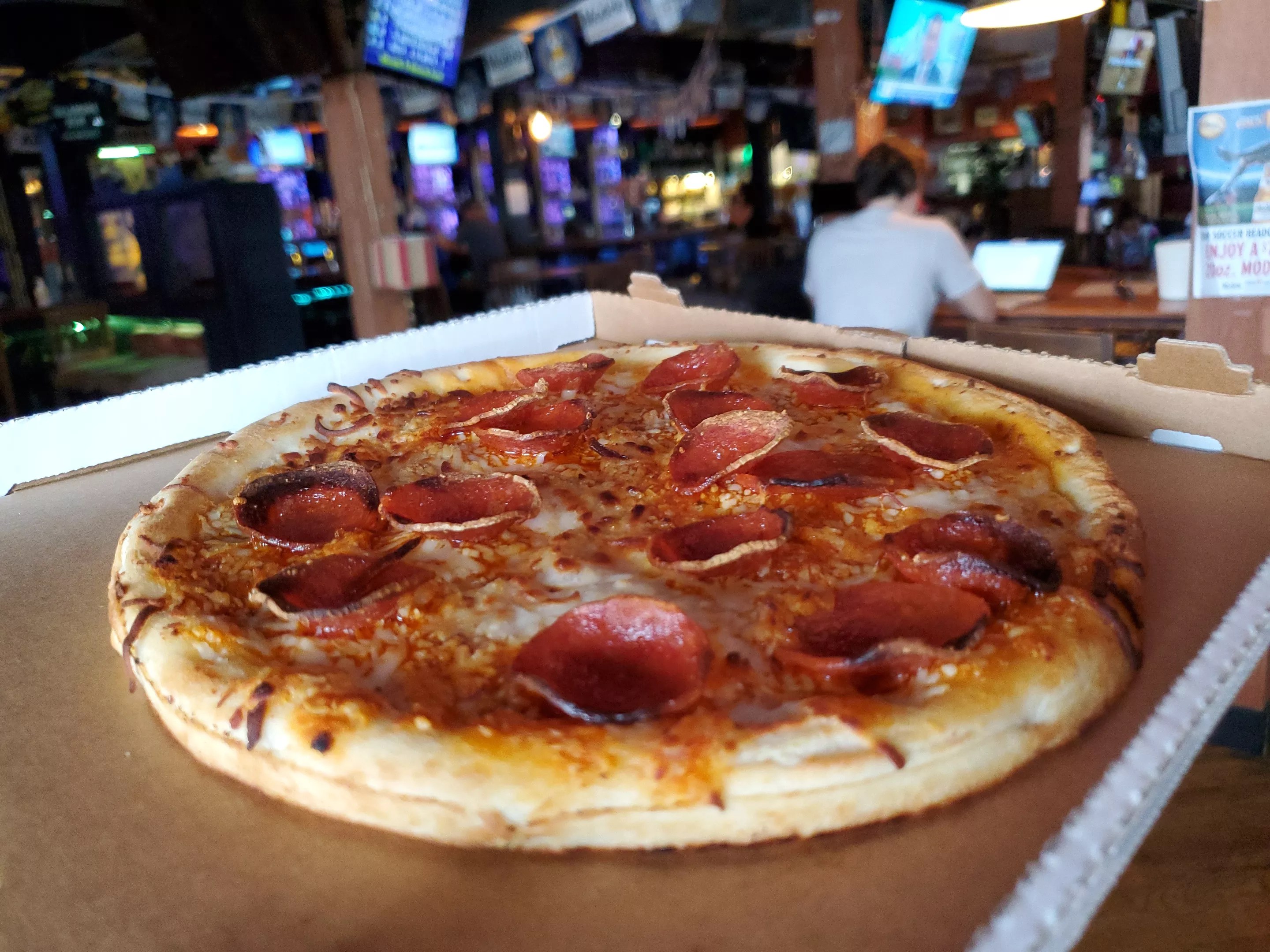 But the pizza was as promised: It was a hot meal acquired sans human interaction (besides getting the pizza cutter from the bartender), and I managed to go through a second slice, then a third.