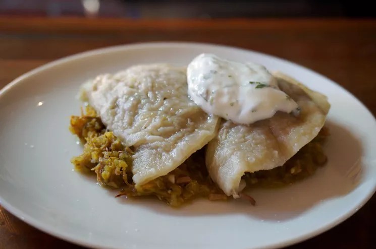 Pork green chile pierogi.