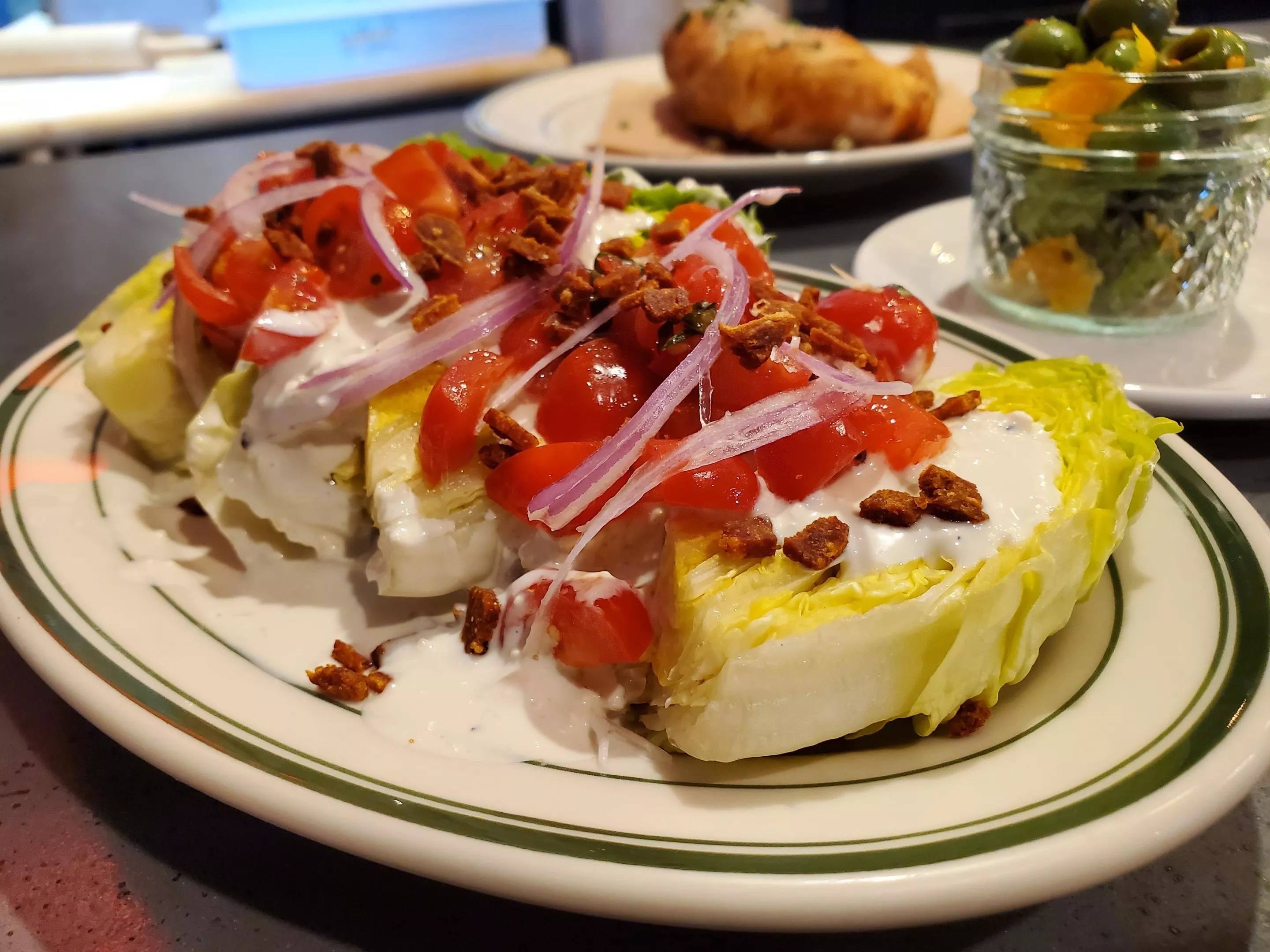 The wedge salad at Rolling Pin is topped with crispy pepperoni bits.