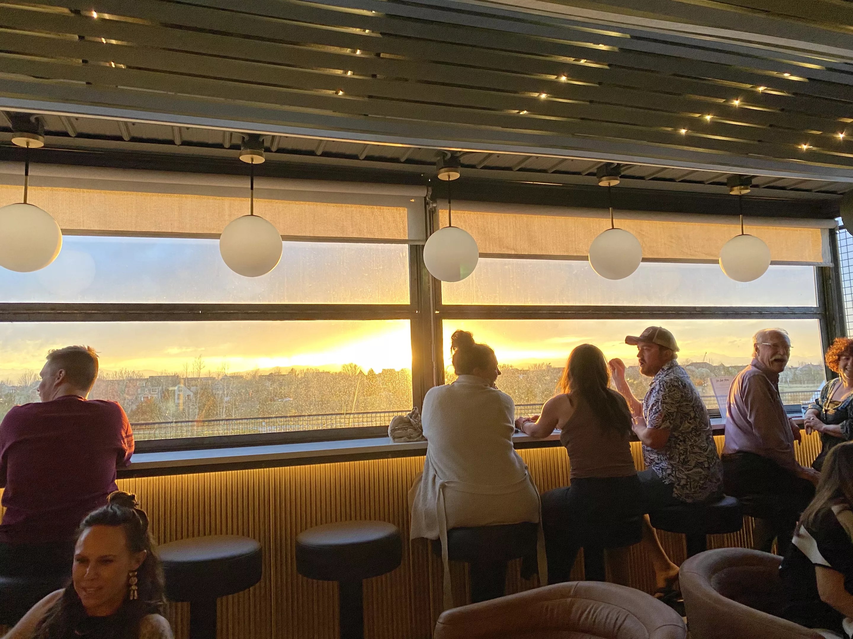 You begin the experience by checking in at a desk outside the elevator to get the okay to board. You emerge three stories up into an intimate space where every seat is first-class, from the bar-facing stools where you can watch cocktails being crafted to large, comfortable chairs in a lounge area to a row of spots along the windows that offer fresh air when the weather is warm and a view of the skyline — and sunset, if you time your visit right.