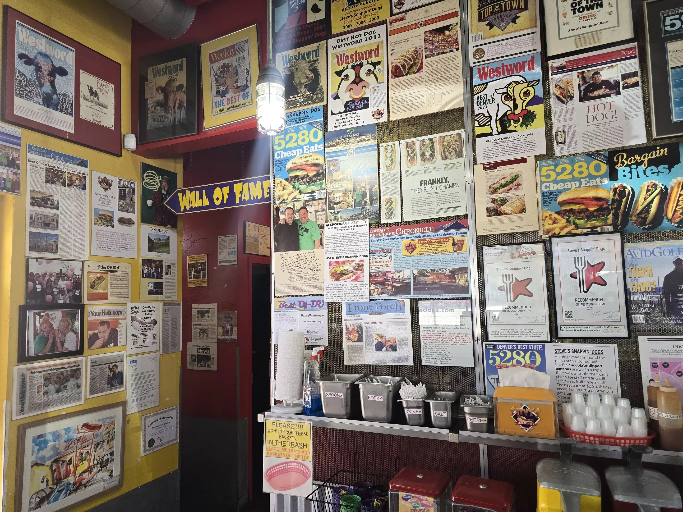 The Wall of Fame at Steve’s includes many Westword awards.