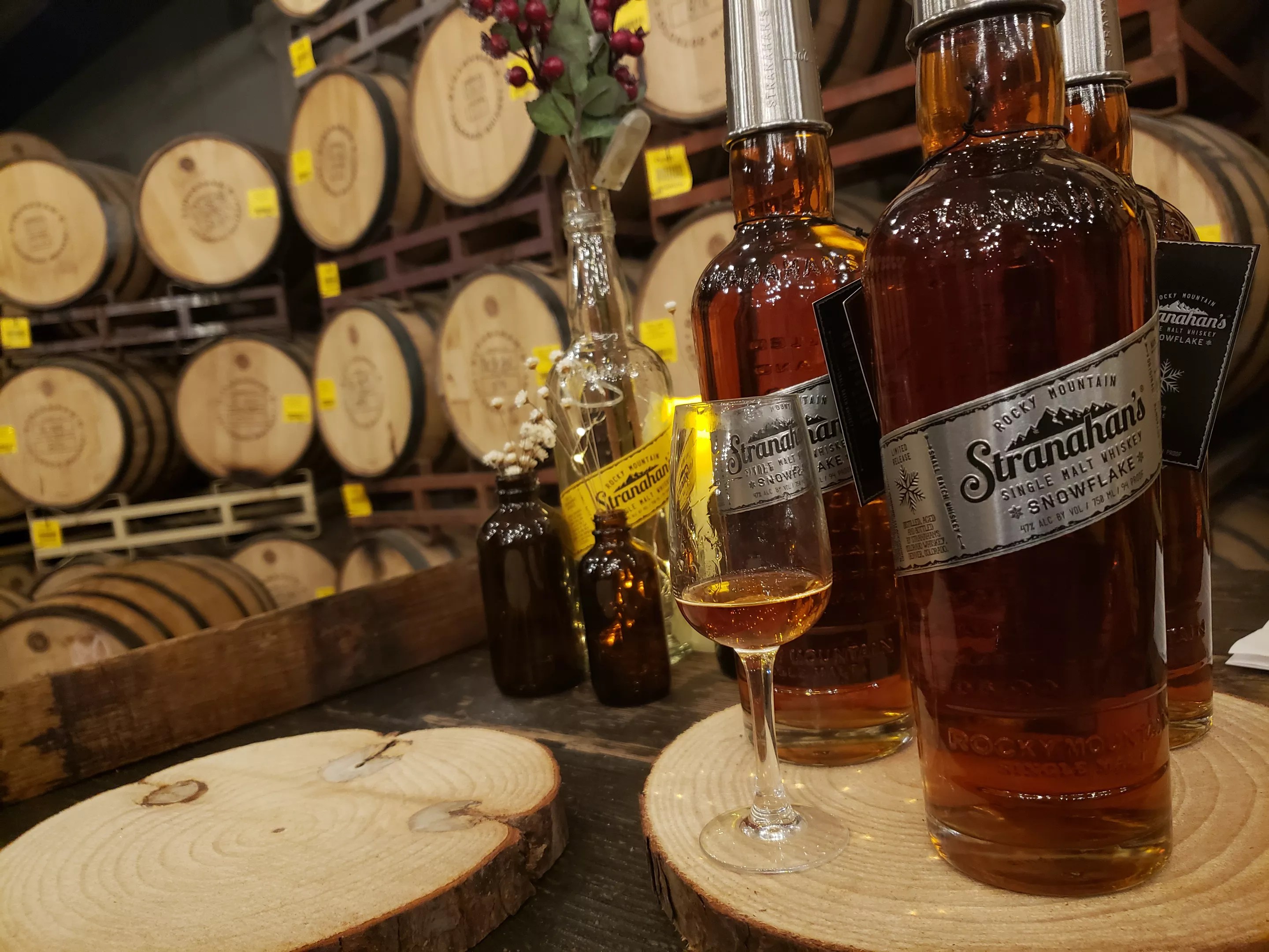 Bottles of Snowflake number 16, Mount Bierstadt, at a special whiskey tasting at Stranahan’s.