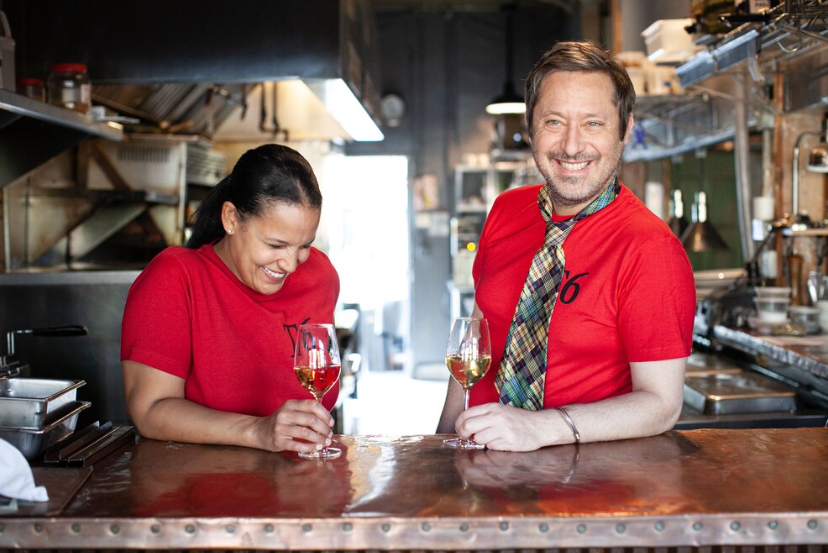 Aaron Forman (right) with Table 6 chef Aniedra Nichols.