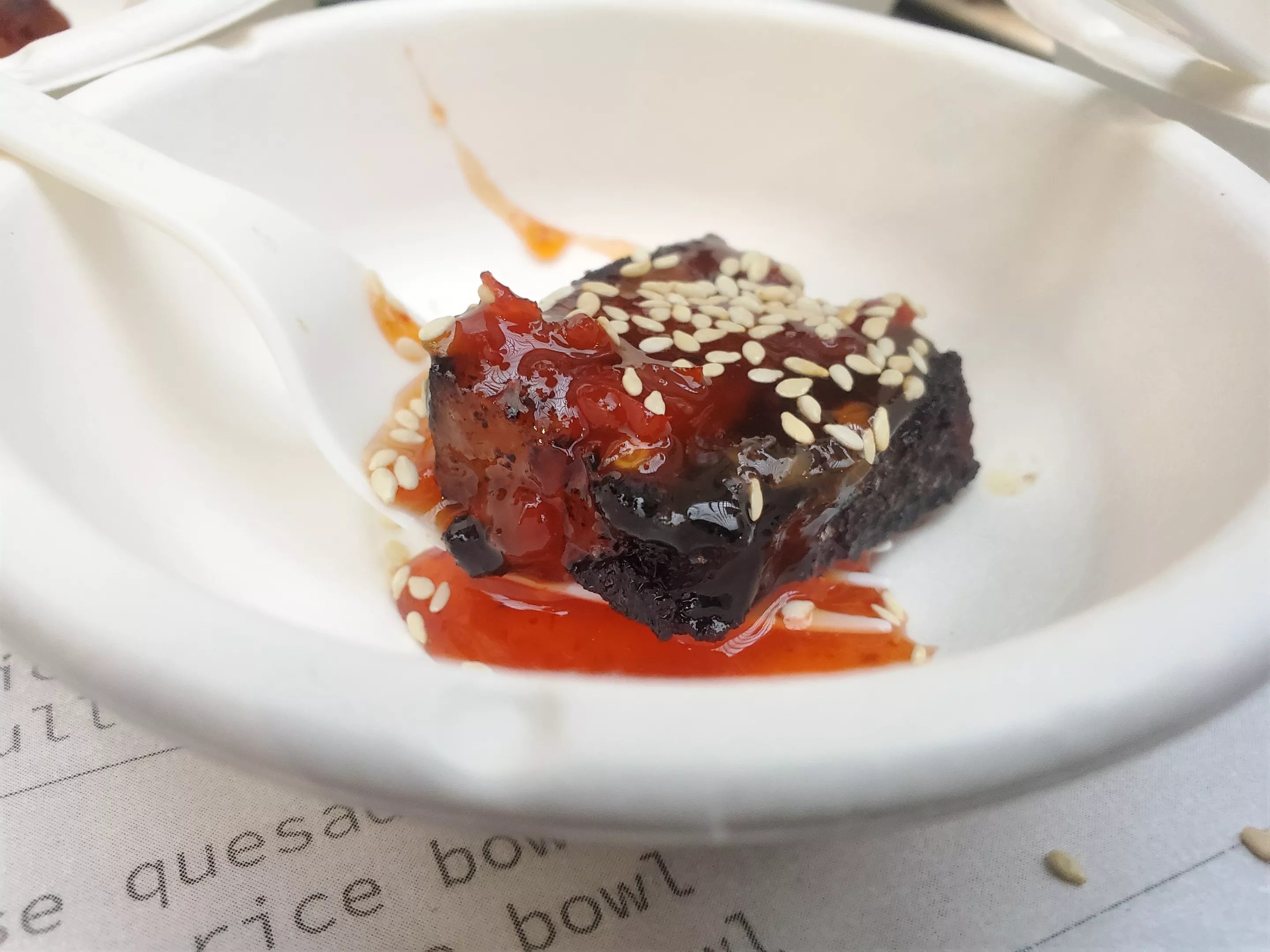 Adobo, which started as a food truck and now has locations on Federal Boulevard and inside First Draft in RiNo, is known for its smoked carnitas that can be added to its vegetarian green chile for one of the best takes on that local favorite in town. For the Big Eat, it opted for smoked pork belly instead — a single, super-tender bite amped up by the use of cherry and Thai chile glaze with some sesame seeds for crunch.