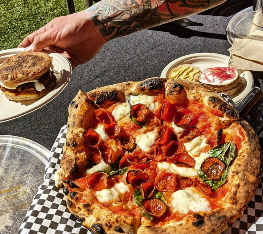 She also met her partner, Colton Steiner, through that network, about the same time she added pizza (dubbed “Funky ‘Za”) to her lineup. “I actually was buying flour through him,” she says. Steiner worked at Dry Storage, an artisan mill in Boulder from ie Hospitality, the group behind restaurants Bruto, the Wolf’s Tailor and Basta. “I had no idea he had worked at Basta and had been making wood-fired pizzas forever,” she adds.