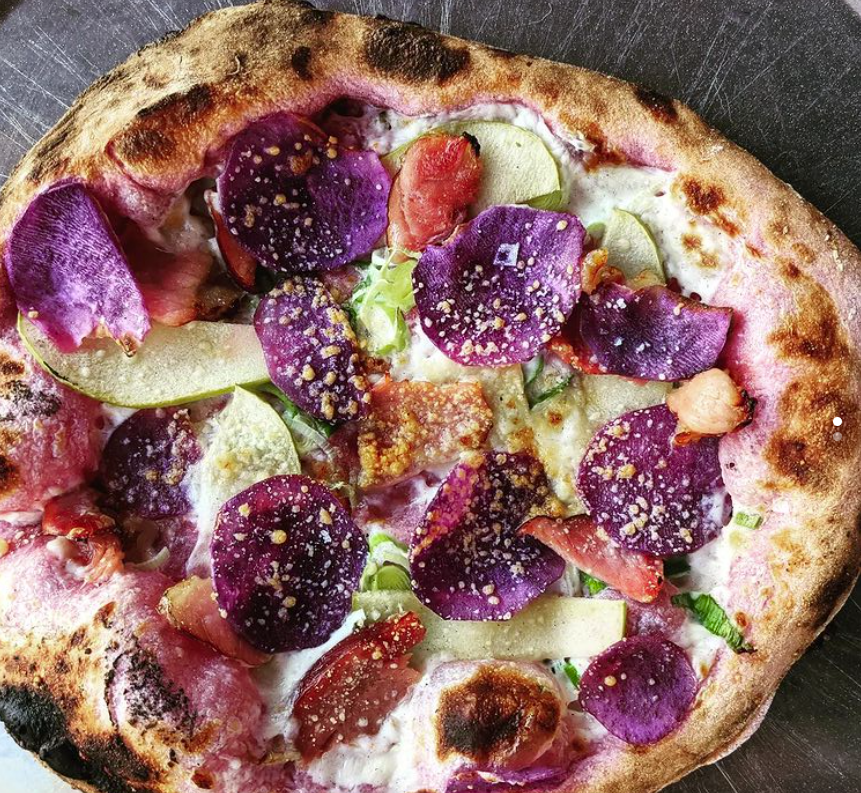 Pizza, but make it funky, with a pink-hued beet-infused crust.