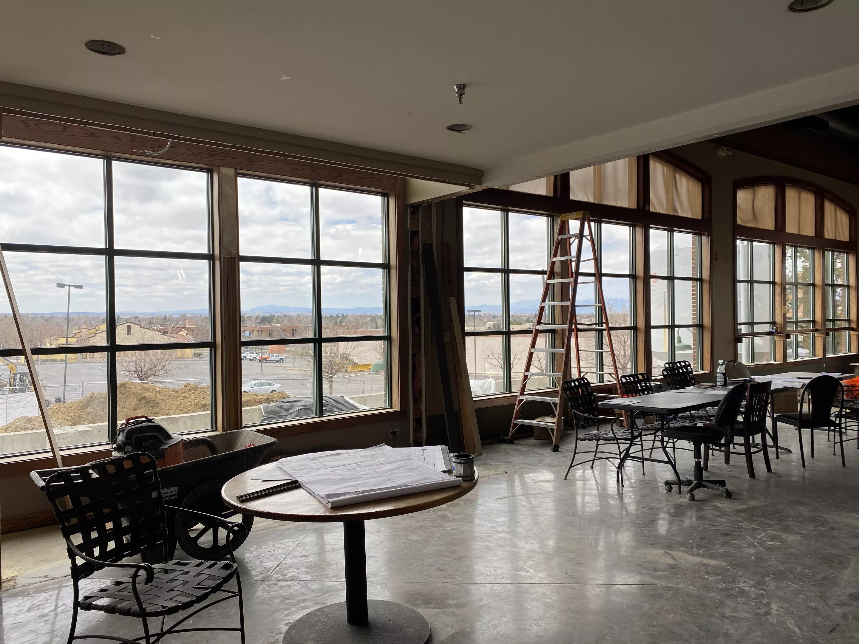 Looking out from the south-facing windows of Grange Hall, it’s easy to envision rolling ranchland stretching from where a new patio will soon be installed all the way to Pikes Peak (visible in the distance even on a hazy day), even if the view is now dominated by the rooftops of housing developments and shopping centers. The building sits on the brow of a hill, so there’s nothing blocking the vista (for now, it also includes a shuttered Macaroni Grill and the vacant parking lot of a Regal movie theater off Arapahoe Road). The new patio will seat about 75 guests, and an existing east-facing patio will add another thirty or so outdoor seats for a total of 2,500 square feet of open-air dining. On the south side, garage windows will be added to open the dining room onto the patio. A big parking lot is also part of the property; Guard plans to host outdoor events like markets, concerts and festivals there.