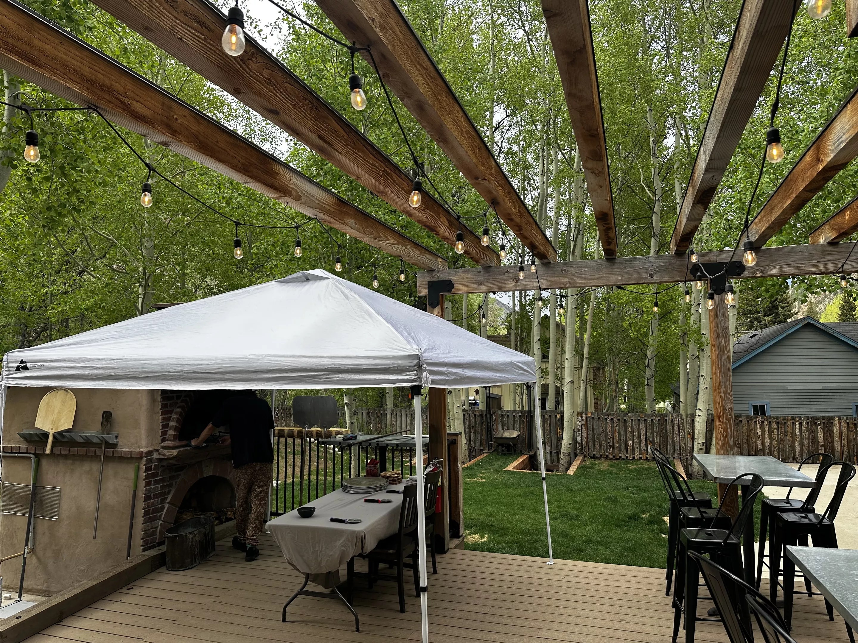 The back patio at Clear Creek Inn is home to aspens and a wood-fired pizza stove.