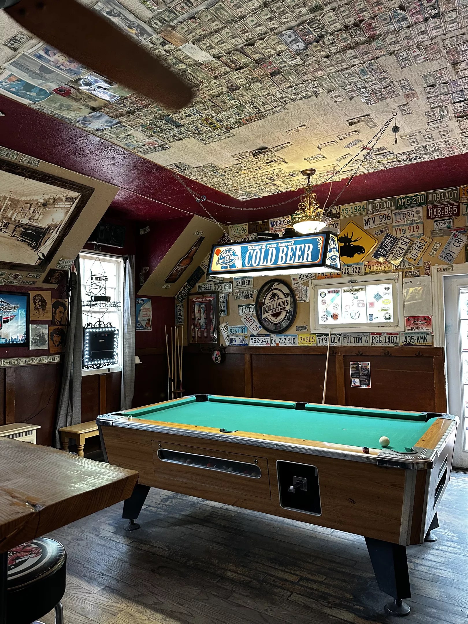 The pool table wasn’t vacant for long at Mother’s Saloon. Not pictured: the creek running alongside the back patio.
