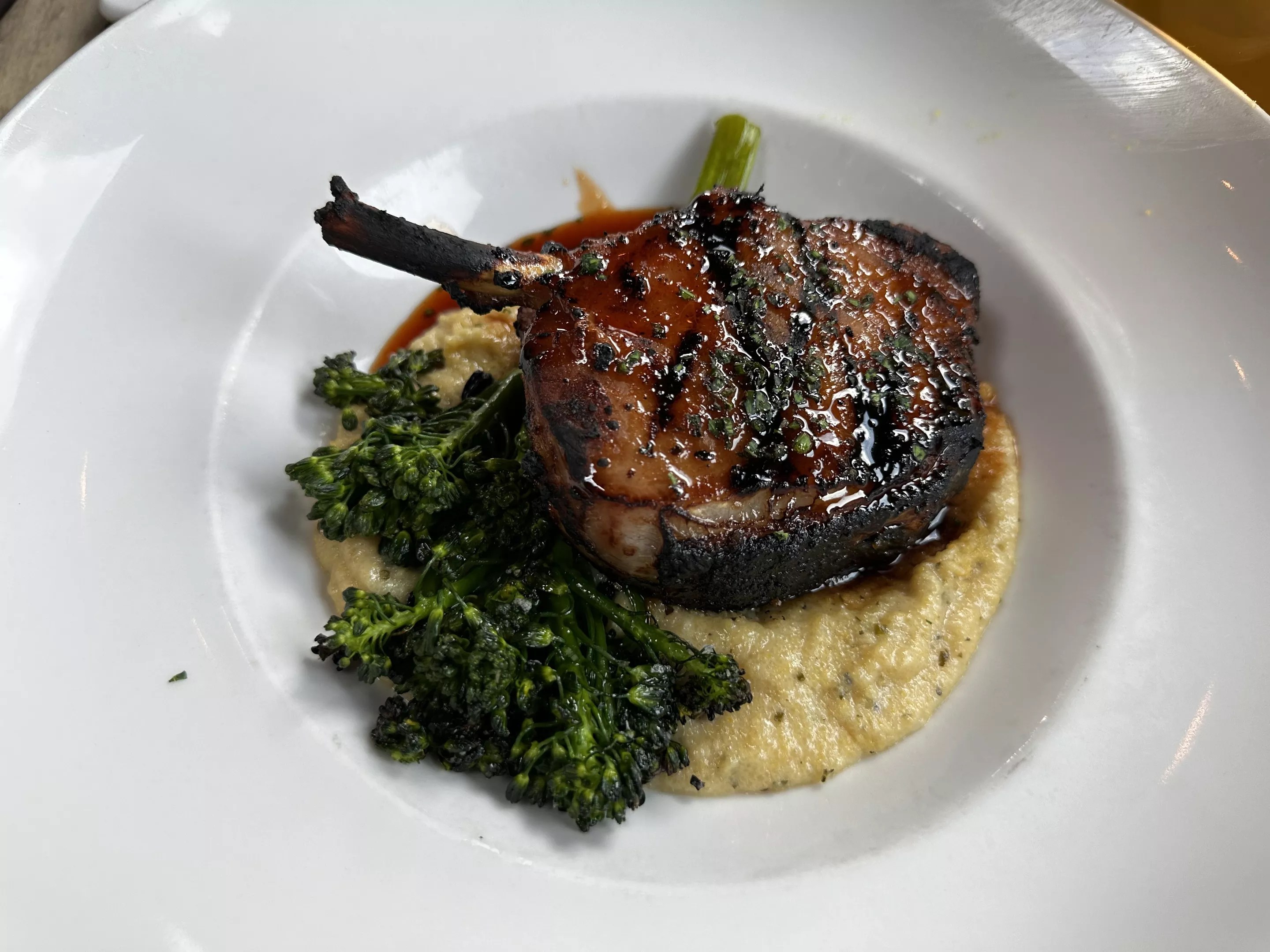 The hot honey sous vide pork chop at Cooper’s on the Creek.