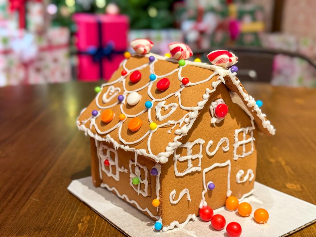 After my day full of activities, I was ready to relax and take in the gorgeous Gaylord Rockies holiday decor. The resort is completely decked out for the season, and the lobby offers a beautiful view of the Rocky Mountains, but enhanced with Christmas lights, wreaths and trees. While I was admiring my surroundings, I checked out the Gingerbread Mountain Cabin in the main lobby, a life-sized gingerbread house comprising more than 1,400 pounds of gingerbread, icing and candy. The house stands over eight feet tall and comes complete with a a chimney, a Christmas tree, and a pair of skis out front.