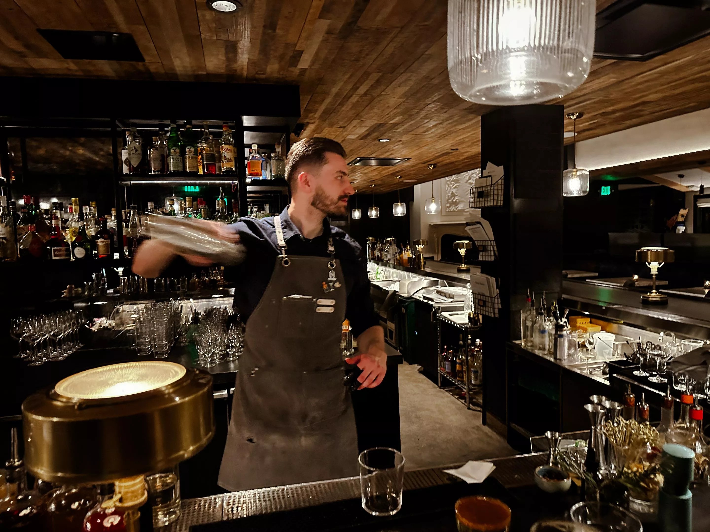 Bartender Lusan Pelemis prepares a cocktail in the Slope Room at Gravity Haus Vail.