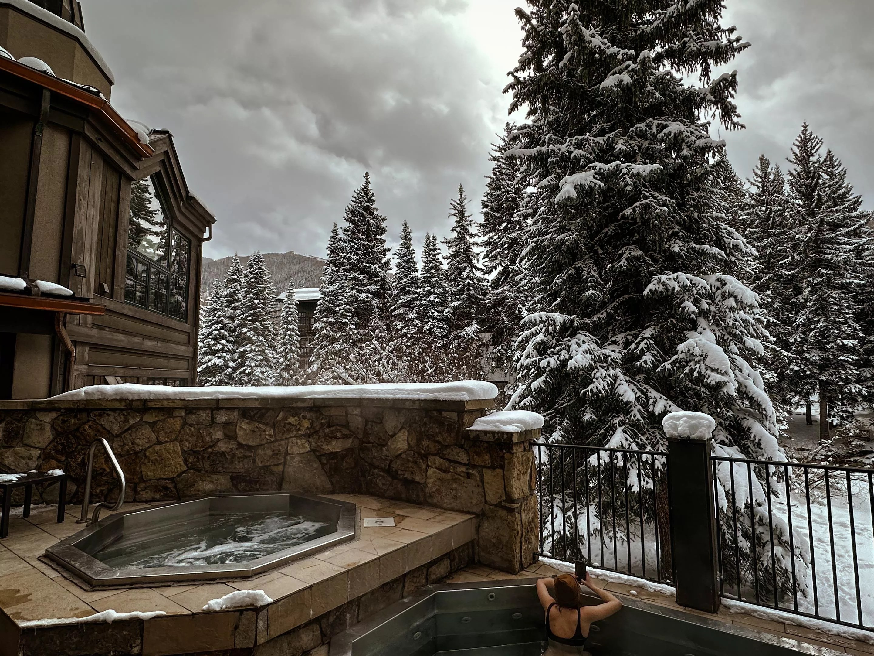 A focal point at Gravity Haus Vail has to be the two outdoor hot tubs. Large pine trees surround the property and hot tubs, but you can glimpse the slopes and skiers through the trees. Snow fell lightly as guests enjoyed the quiet, tranquil sense of calm in the winter air. I even overheard some taking what sounded like a work call from the hot tub. That’s my kind of remote work.